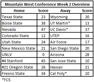 – San Jose State lost on the road to #4 Stanford; 45-10.